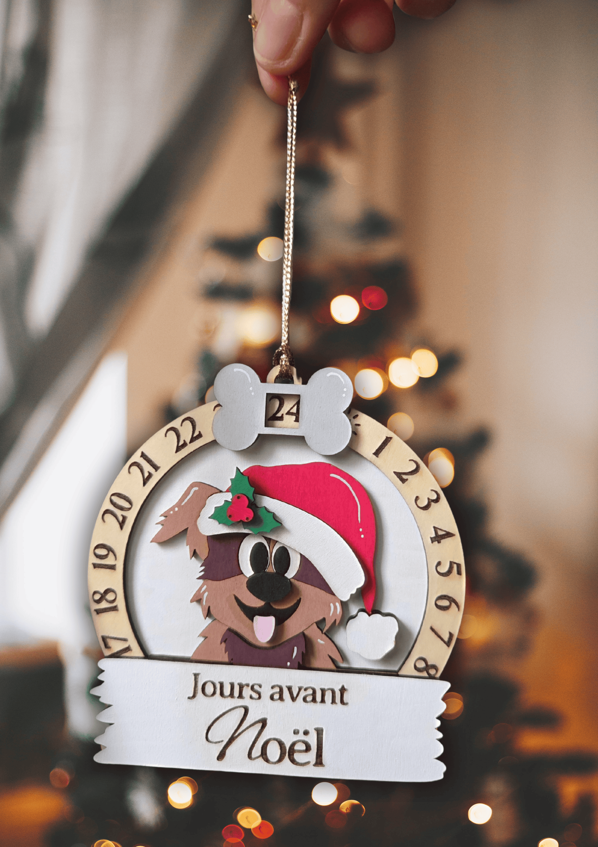- Design : chien festif avec inscription “Jours avant Noël”